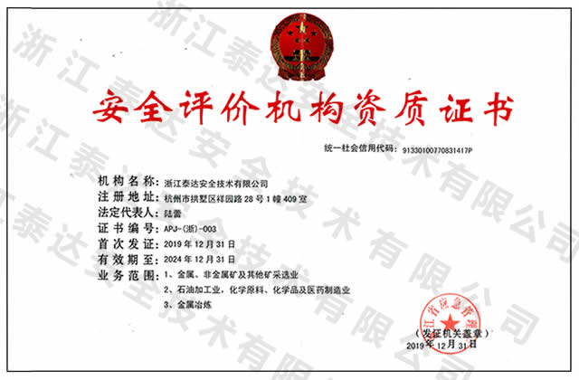 我公司是一家從事安全評價、安全生產(chǎn)社會化服務(wù)、安全生產(chǎn)檢測檢驗、職業(yè)病危害技術(shù)服務(wù)、消防安全評估和社會穩(wěn)定風(fēng)險評估等業(yè)務(wù)的綜合性安全技術(shù)服務(wù)機構(gòu),安全評價資質(zhì)業(yè)務(wù)范圍涵蓋金屬、非金屬礦和其他礦采選業(yè)、石油加工業(yè)、化學(xué)原料、化學(xué)品及醫(yī)藥制造業(yè)和金屬冶煉三大行業(yè),公司位于杭州祥園路28號杭州樂富智匯園內(nèi)。